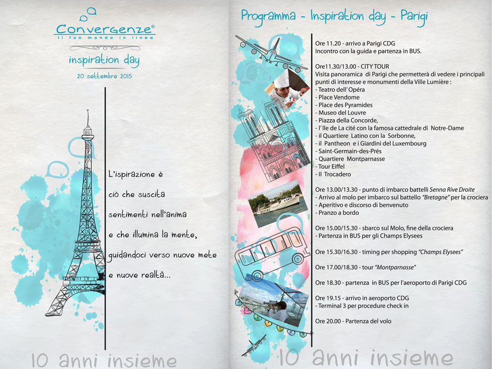 Il 20 settembre Convergenze ha festeggiato il suo decimo anniversario con un evento molto speciale: tutto lo staff è volato a Parigi per trascorrere una giornata in armonia, ormai divenuta indimenticabile!