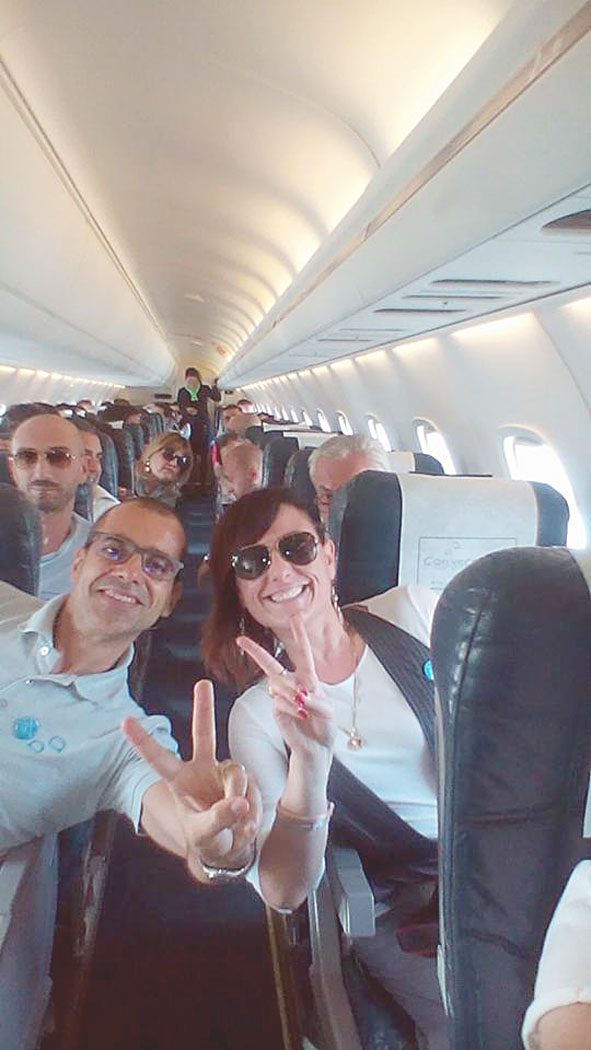 Partenza alle sei di mattina dal Convergenze Innovation Center, zaini in spalla e via verso l’areoporto di Napoli Capodichino, dove un aereo attende il gruppo: quanta emozione e allegria..