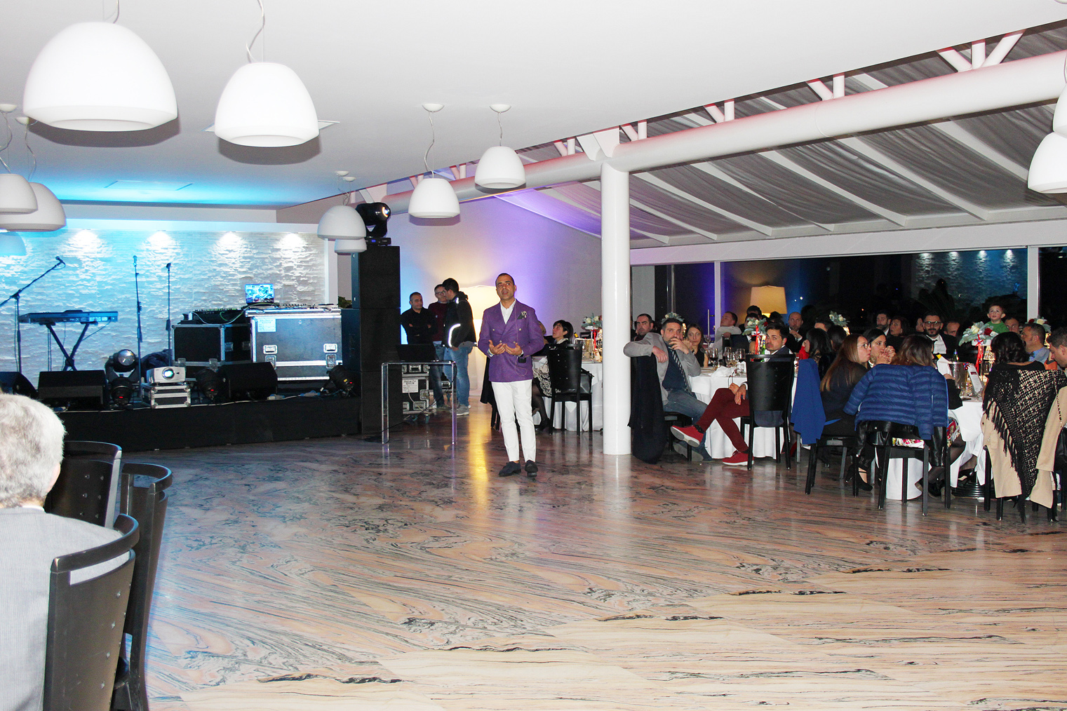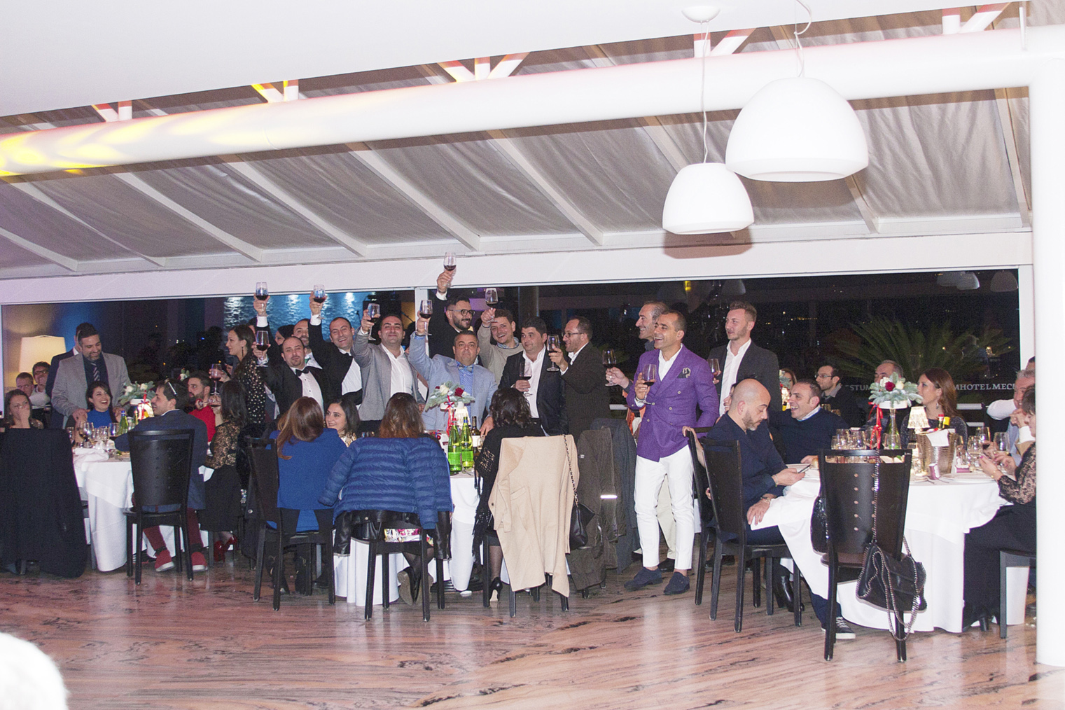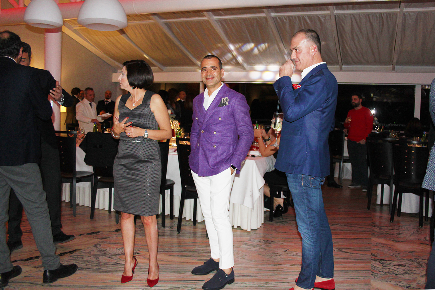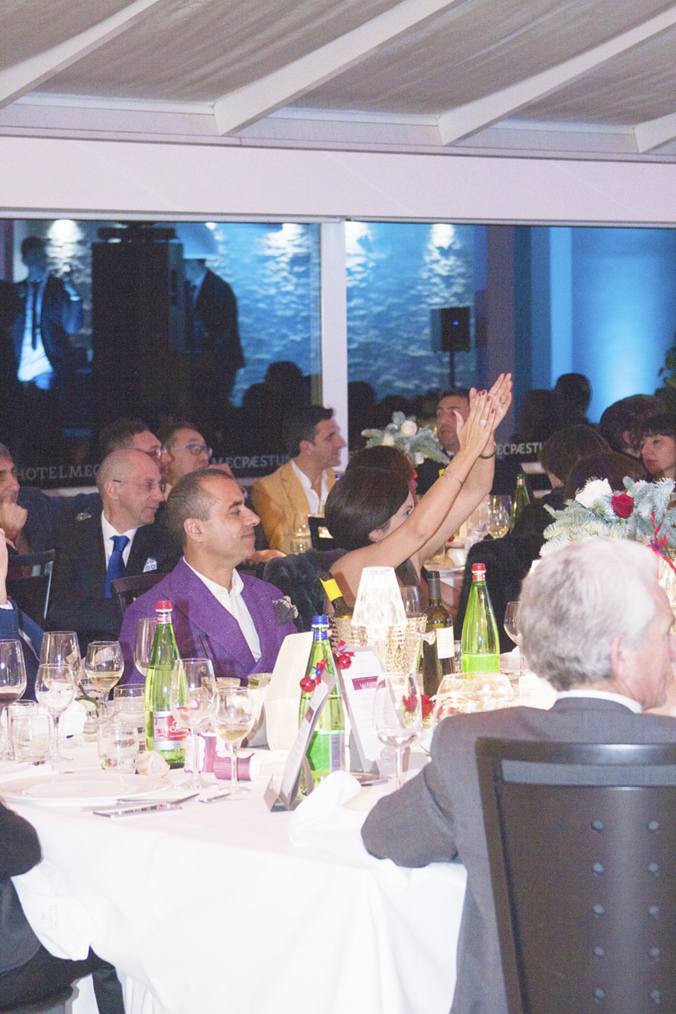 Il dress code della serata era ispirato al film premio oscar “La Grande Bellezza”, che ha visto gli uomini esibirsi in bellissime giacche colorate, chiaramente quelle indossate dal protagonista Jep Gambardella, scrittore decadente e disincantato, acuto osservatore della realtà che ci circonda, e le signore vestite con disinvolta e moderna eleganza.