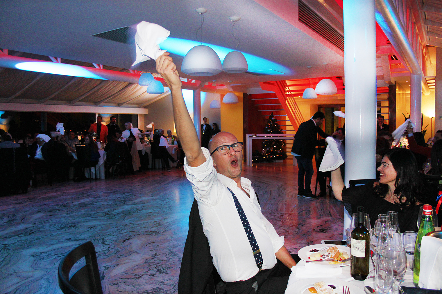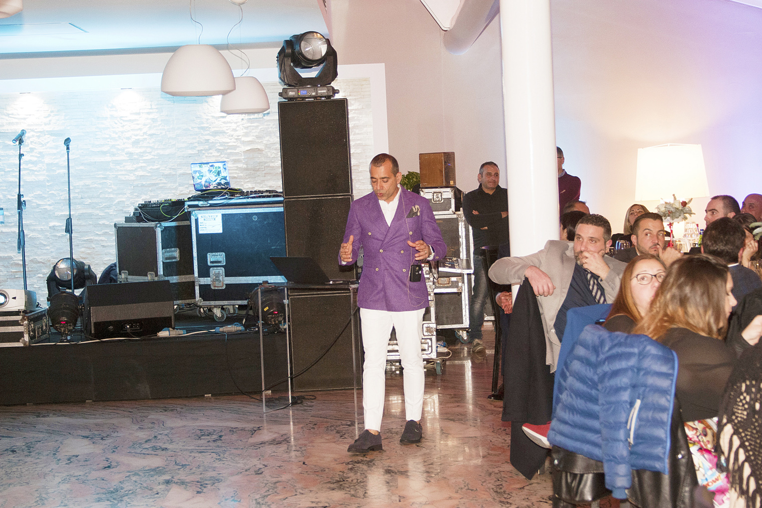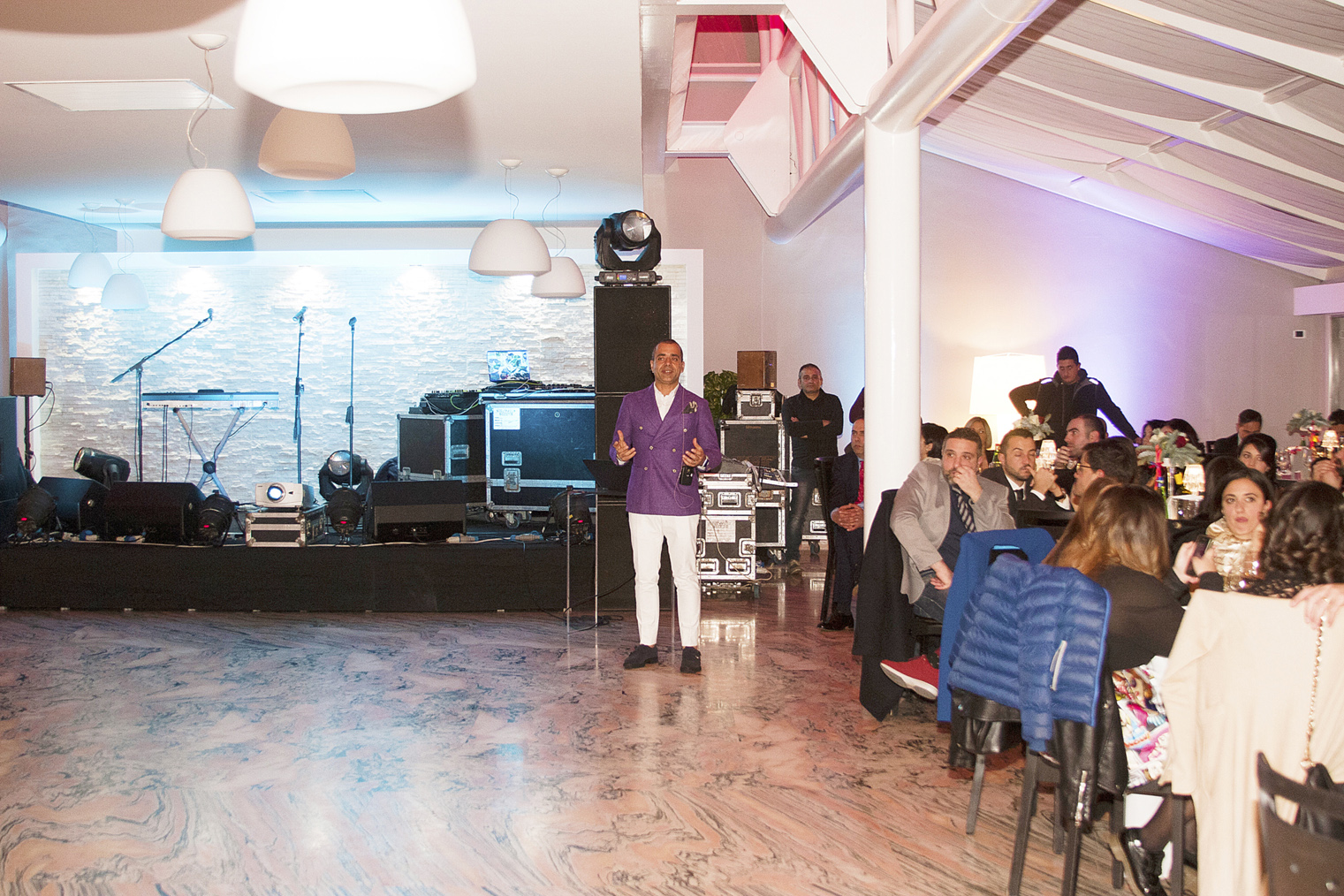 Il dress code della serata era ispirato al film premio oscar “La Grande Bellezza”, che ha visto gli uomini esibirsi in bellissime giacche colorate, chiaramente quelle indossate dal protagonista Jep Gambardella, scrittore decadente e disincantato, acuto osservatore della realtà che ci circonda, e le signore vestite con disinvolta e moderna eleganza.
